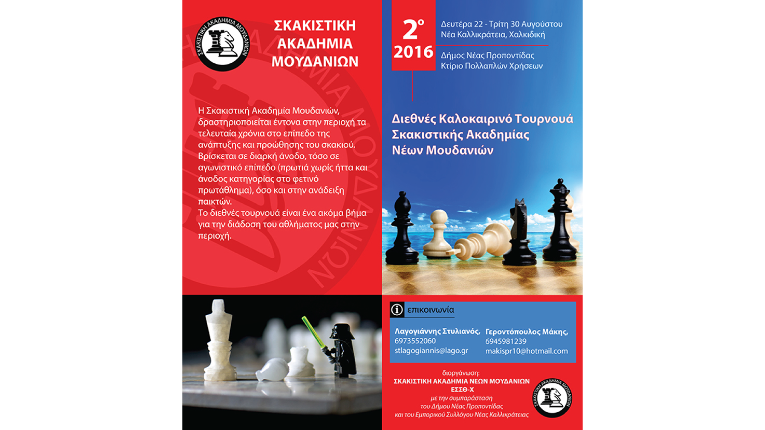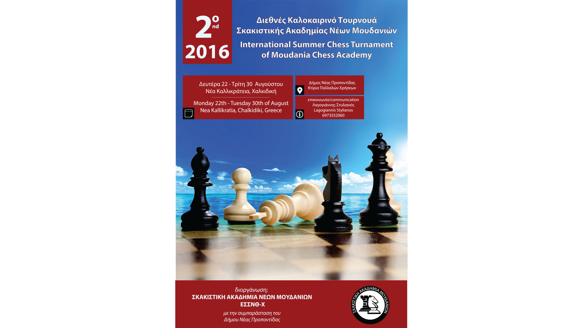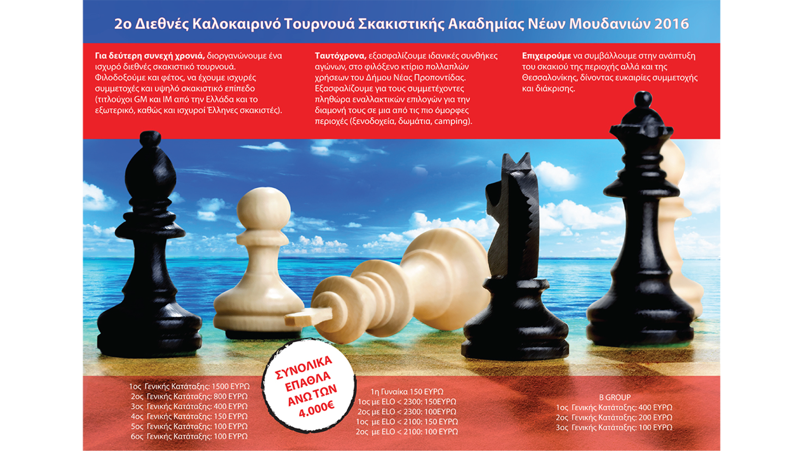 ΣΑ Μουδανιών ■ Ανάθεση: Σκακιστική Ακαδημία Μουδανιών ■ Έτος: 2016 ■ Πληροφορίες: Αφίσα | Έντυπο υλικό ■ Κατηγορία: Έντυπο