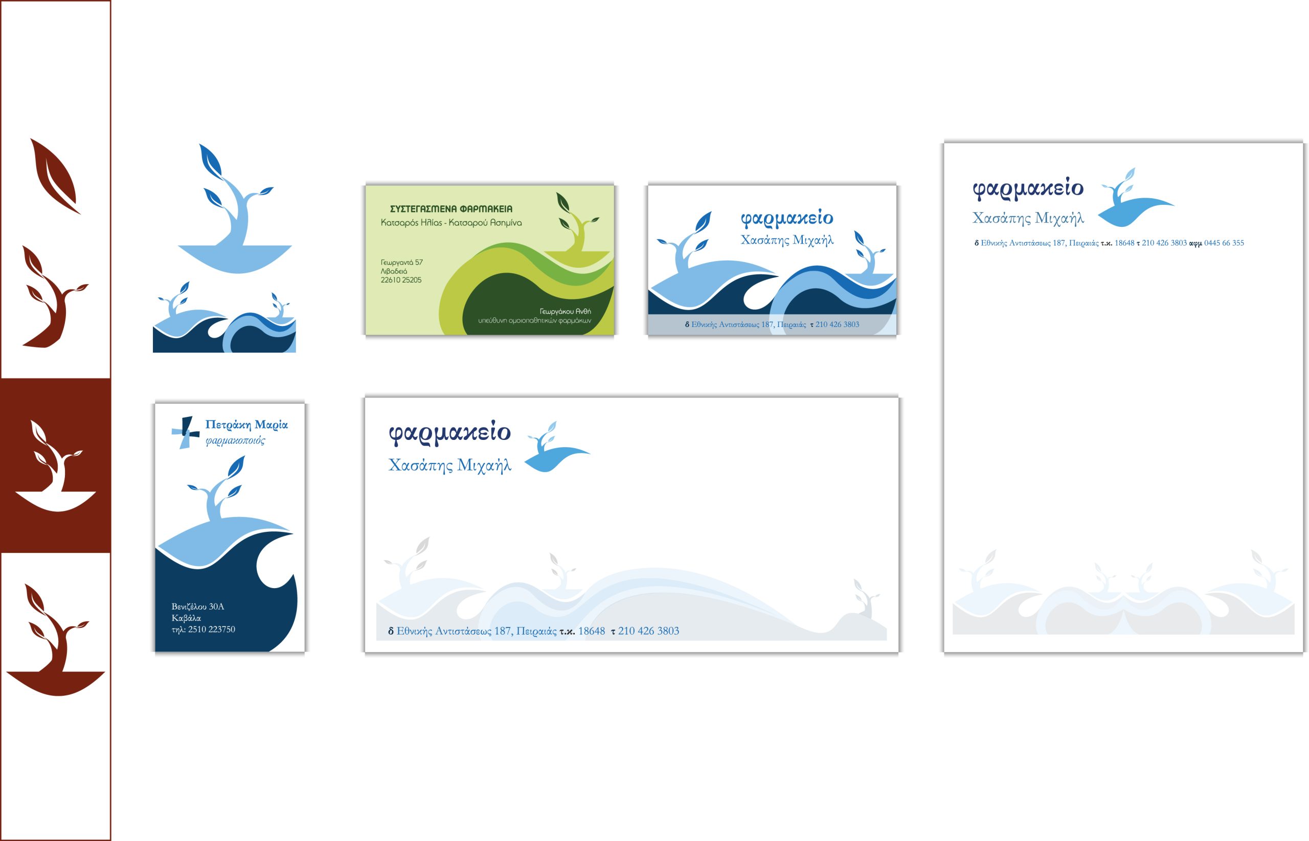 Ολοκληρωμένα πρότυπα αναλώσιμων φαρμακείου (λογότυπο / κάρτα / επιστολόχαρτο / φάκελος)